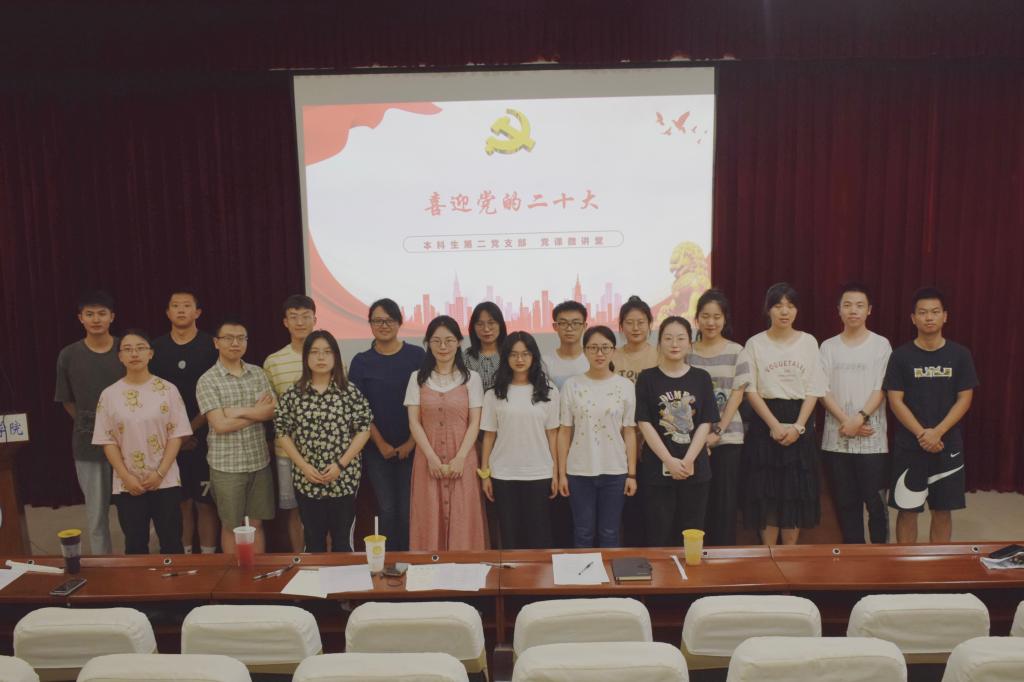 为传承红色基因,巩固党史学习教育成果,激励员工党员砥砺奋进,青春献礼二十大,6月10日下午,公司本科生第二党支部在物理大楼小阶梯教室举办了“喜迎二十大、笃行向未来、奋进新征程”党课微讲堂活动。本科生第二党支部书记贺颖、2018级兼职辅导员李龙珍、2019级员工党员汤跃静和2020级员工党员舒韵函、严堃荣五位同志担任活动评委。