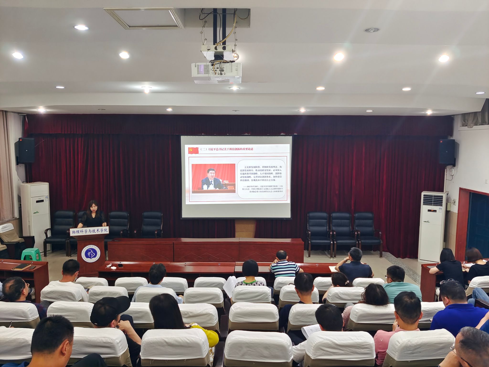 随后,刘汭雪副书记带领大家学习了习近平总书记关于教育、科技、人才工作的重要论述。她指出,以习近平同志为核心的党中央把握国内外发展大势,在党的二十大报告中明确指出:“教育、科技、人才是全面建设社会主义现代化国家的基础性、战略性支撑。”并在党和国家事业发展布局中,首次将教育科技人才支撑单列为党代会政治报告的一个部分,深刻阐释了新时代实施科教兴国战略、强化现代化建设人才支撑的总体要求和重点任务,明确了加快建设教育强国、科技强国、人才强国的出发点,具有非常重大的战略意义。她强调,围绕教育、科技、人才是全面建设社会主义现代化国家的基础性、战略性支撑,习近平总书记发表一系列重要论述,这是以习近平同志为核心的党中央以更高远的历史站位、更宽广的国际视野、更深邃的战略眼光作出的全新擘画,为新时代我国教育发展、科技进步、人才培养指明了前进方向,提供了根本遵循。