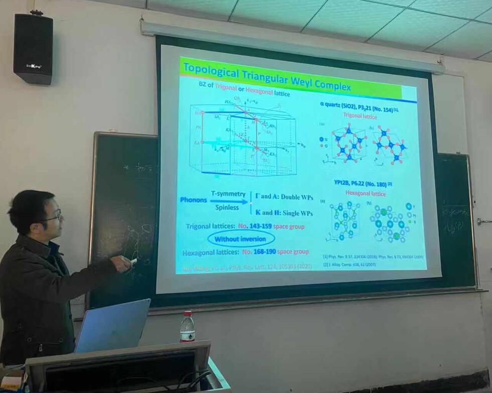 报告会由公司副经理袁宏宽教授主持,计算物理团队教师、研究生和本科生到场聆听并就具体的学术问题开展了交流讨论。王锐教授首先介绍了声子拓扑中受对称性保护这一研究领域的科学前沿,讲解了紧束缚模型理论解析声子中不同拓扑态的方法,报告了他们团队在这一领域取得的最新突破性进展。王锐教授的报告聚焦于物理基础科研的热点和难点,讲解过程中对物理机制的分析深入浅出,引发了师生的热烈讨论。本次报告激发了公司师生对量子物理方向的浓厚兴趣,拓展了公司师生的研究视野。