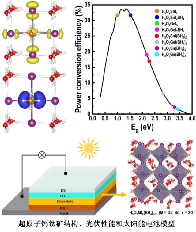 超原子钙钛矿是利用超碱和超卤原子分别代替钙钛矿(如CsPbI3)中A位和X位原子而得到的一类材料,是钙钛矿材料的一个重要分支。因具有独特的带边结构,使其体现出了优越的物理化学性能(如光伏性能、发光性能等等),进而在军事(电子器件)、显示(电视屏幕)、照明(白光灯)、能源(太阳能电池)等领域具有重要的应用前景。传统的、性能优越的钙钛矿通常有铅(CH3NH3PbI3)、常温易相变(CsPbI3)、稳定性差等缺点。基于此,设计新型高性能无铅钙钛矿光电材料就迫在眉睫,成为了国内外的科学家关注的焦点。