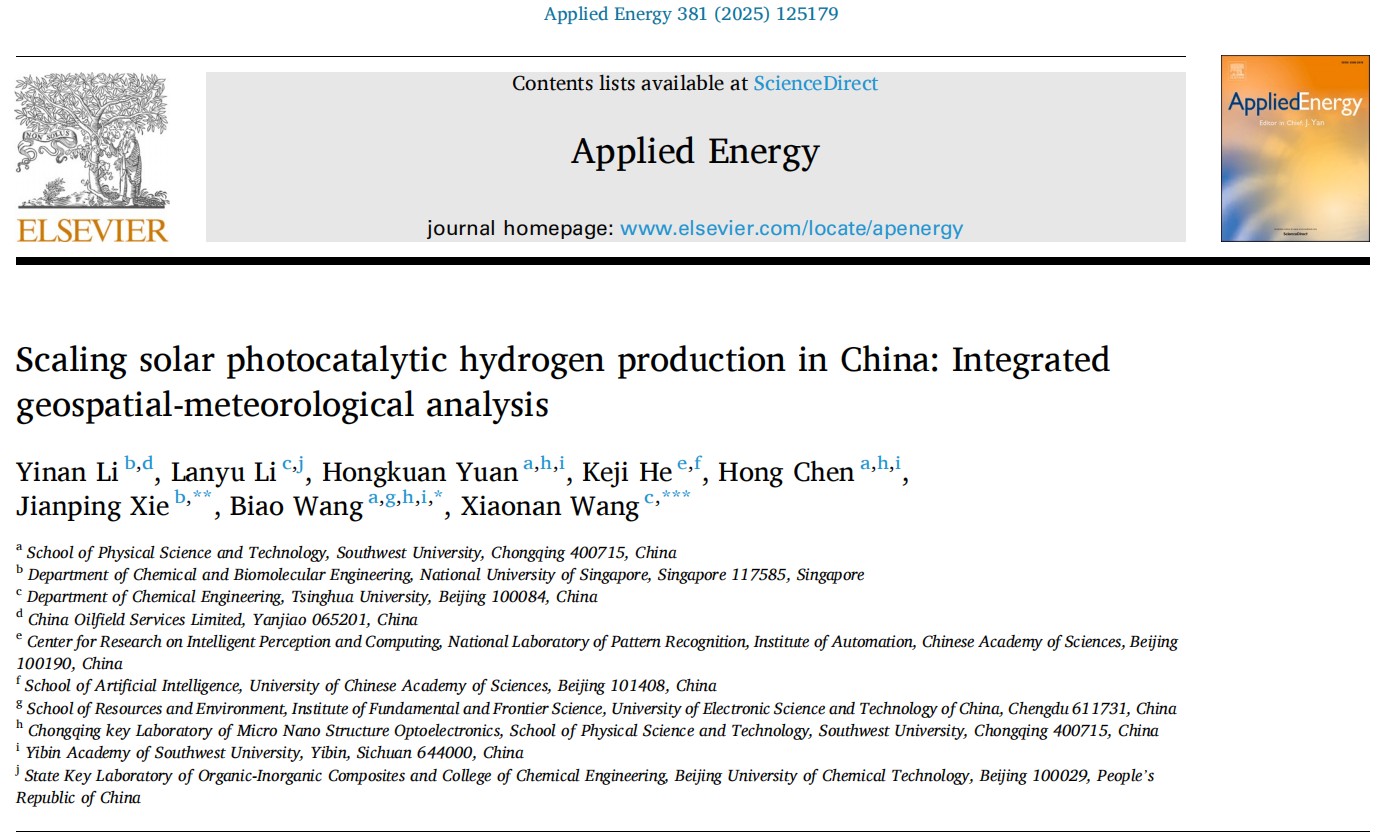 近日,公司计算物理团队袁宏宽教授,王彪副教授携手清华大学王笑楠、新加坡国立大学谢建平教授研究团队,原创性地提出了一种基于气象大数据的机器学习模型,并深度融合全国空间-地理大数据,剖析了中国各地的制氢潜能以及下游产业链布局的合理性。这一突破性的研究成果已在国际能源交叉学科权威期刊《Applied Energy》(影响因子10.1,中科院一区TOP期刊)上发表,题为 “Scaling solar photocatalytic hydrogen production in China: Integrated geospatial-meteorological analysis”。BEVITOR伟德为该论文第一完成单位,王彪老师为通讯作者。
