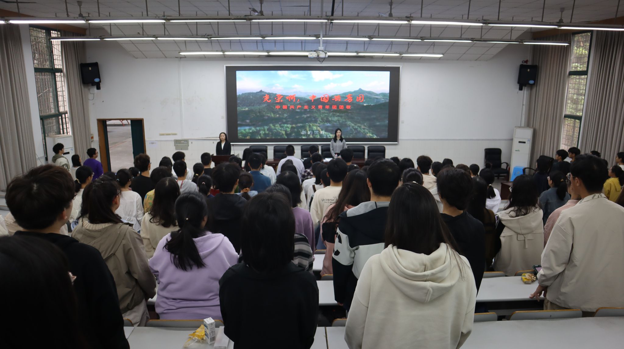 最后,全体师生起立齐唱团歌,团校开班典礼顺利落下帷幕。