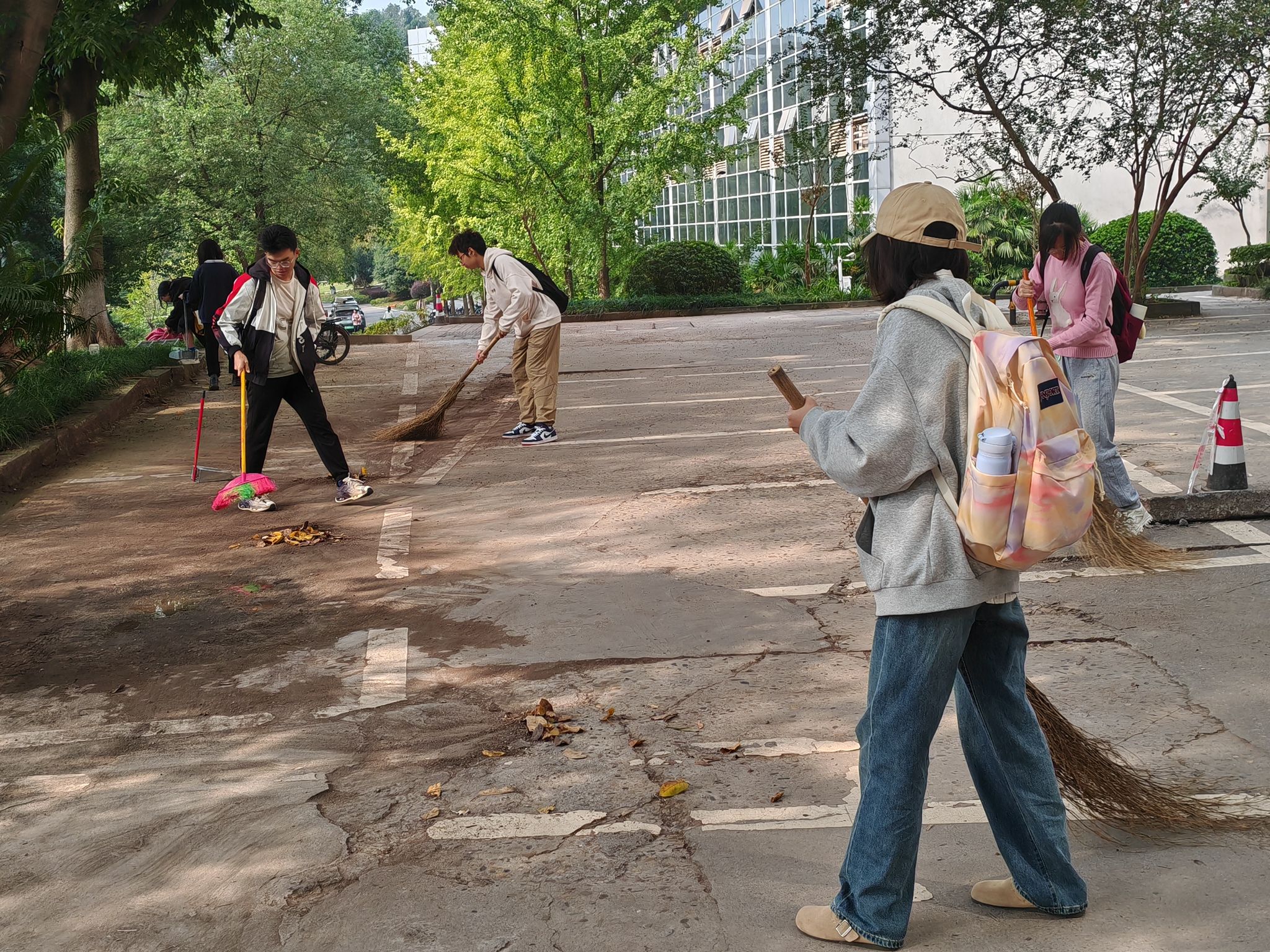 随后,团校学员们还开展了“我为师生办实事”美化校园劳动实践,清扫物理大楼周边的落叶、杂草和白色垃圾。