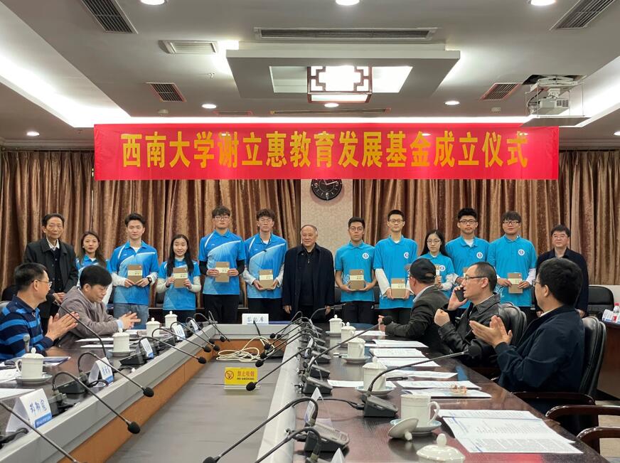 4月16日上午,谢立惠教育发展基金成立仪式在行署楼第五会议室举行。九三学社中央委员会原副主席、重庆市委原主委、重庆市政府原副市长、重庆市政协原副主席谢小军;谢立惠子女代表、电子科技大学本科教学督导组组长谢云荪教授及夫人邓御寇女士;公司电子信息工程公司97岁高龄的退休教授朱传秀老师;九三学社重庆市委会专职副主委黄华以及九三学社北碚区委会、BEVITOR伟德委员会相关负责人;bevitor伟德党委书记、教育基金会理事长李旭锋;副董事长、教育基金会副理事长赵国华出席仪式。bevitor伟德党委书记李余廷、经理吴正茂和全体班子成员,教师代表邱晓燕和五名员工代表参加了仪式。