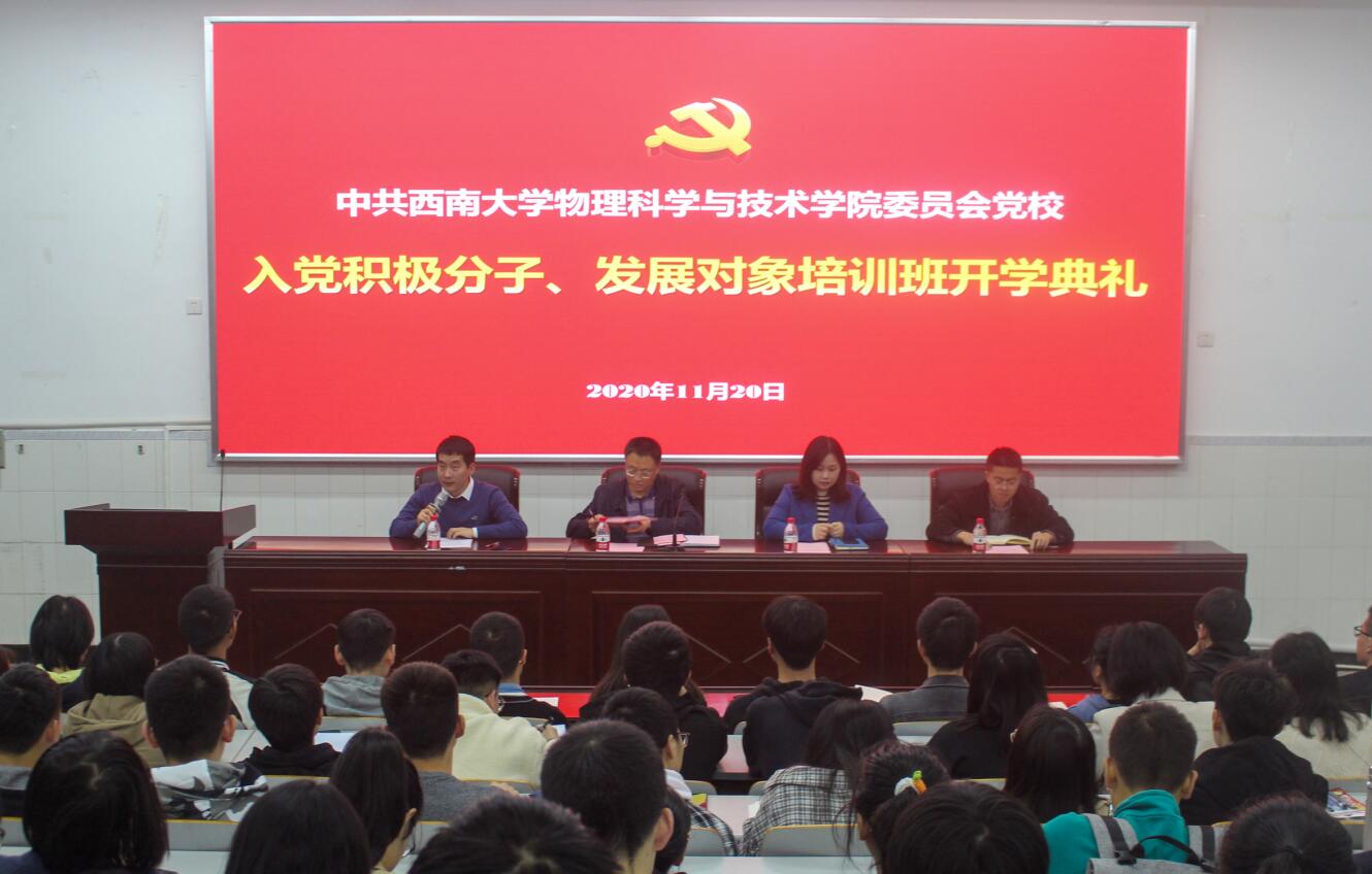 11月20日下午,公司在大阶梯教室举行2020年入党积极分子、发展对象培训班开班典礼。bevitor伟德党委书记、党校董事长李余廷,bevitor伟德党委副书记、党校副董事长刘汭雪, 2020级辅导员晏勇以及189名入党积极分子、42名发展对象参加了开班典礼。开班典礼由公司专职组织员、2018级辅导员卜海东主持。