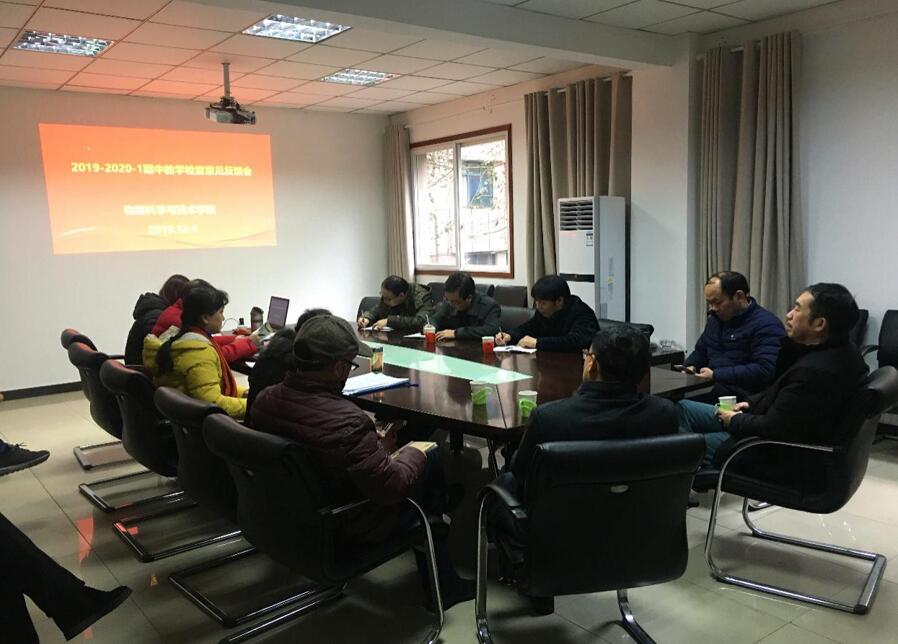 2019年12月4日上午8:30-10:00在公司二楼会议室,教务处教学督导专家一行5人莅临公司反馈期中教学检查情况,公司经理熊祖洪教授、副经理袁宏宽教授、刘汭雪副书记、教研室主任、课程负责人、青年教师代表等12人参加了反馈会。