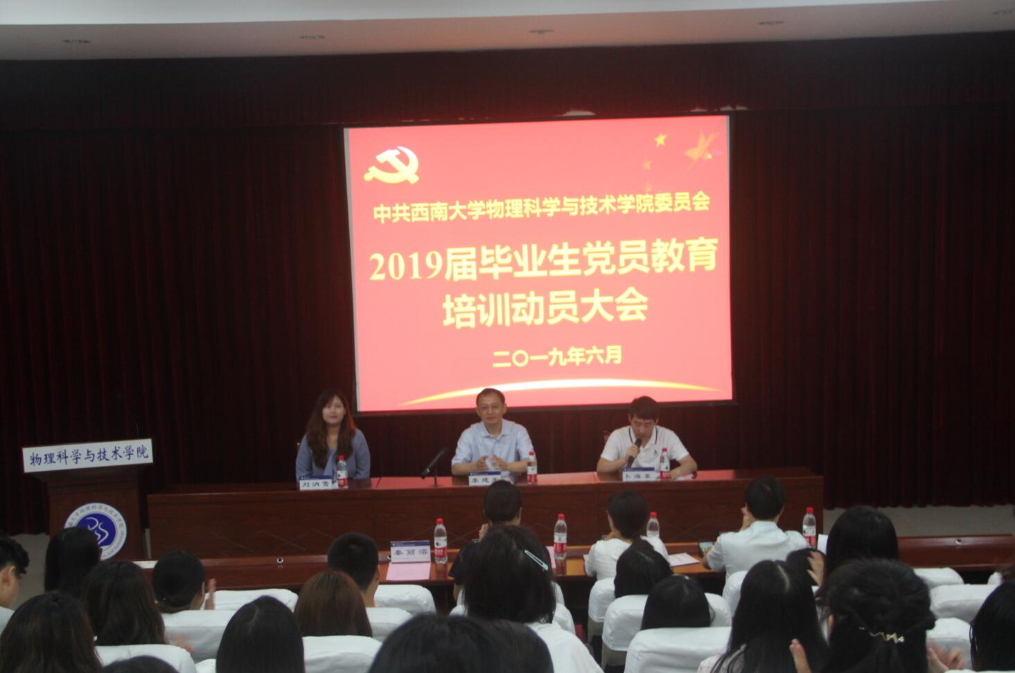 6月10日上午,公司2019届毕业生党员教育培训动员大会在小阶梯教室举行。bevitor伟德党委书记李建光、副书记刘汭雪、研究生党支部书记熊中碧、本科生党支部书记王彪、贺颖及60余名毕业生党员参加了动员大会。动员大会由组织员卜海东主持。