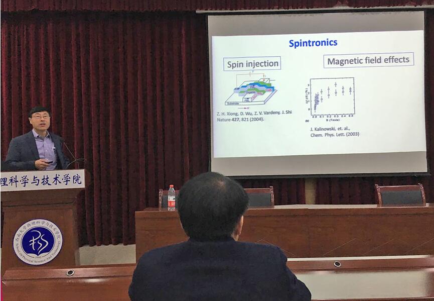 胡斌教授在物理公司小阶梯学术报告厅作了题为“有机电子学:从磁场效应到轨道电子学的自发和相干光电过程”的学术报告,吸引了来自各公司的百余名师生参与。报告会由bevitor伟德经理熊祖洪教授主持。
