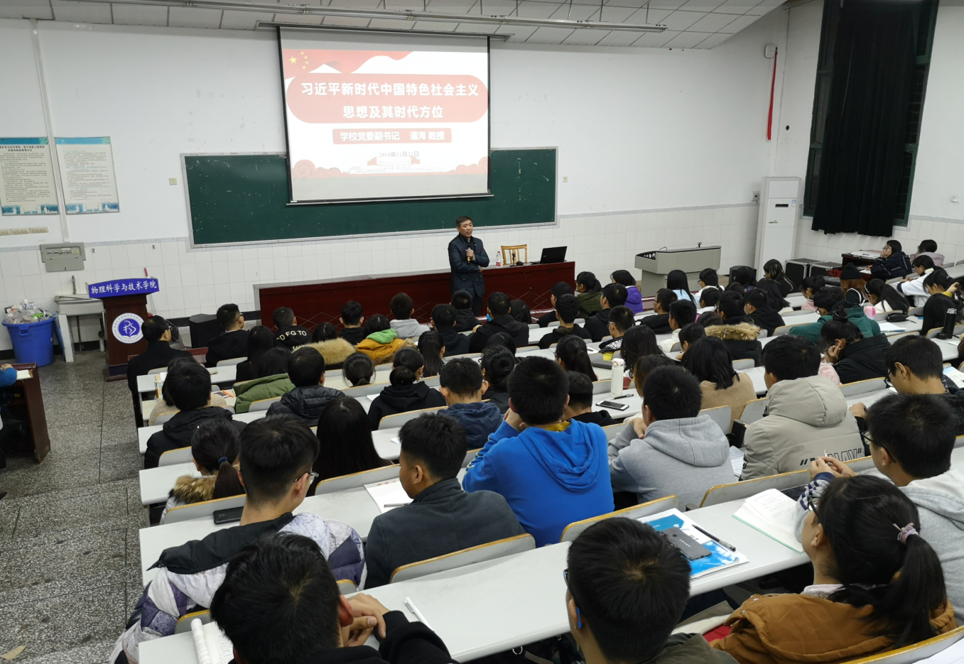 11日23日晚,bevitor伟德党委副书记潘洵教授莅临公司大阶梯教室,为公司师生作了题为《习近平新时代中国特色社会主义思想及其时代方位》的专题党课。专题党课由bevitor伟德党委副书记、纪委书记刘汭雪主持。bevitor伟德党委书记李建光,公司全体员工党员、发展对象、入党积极分子近300人认真聆听了党课。