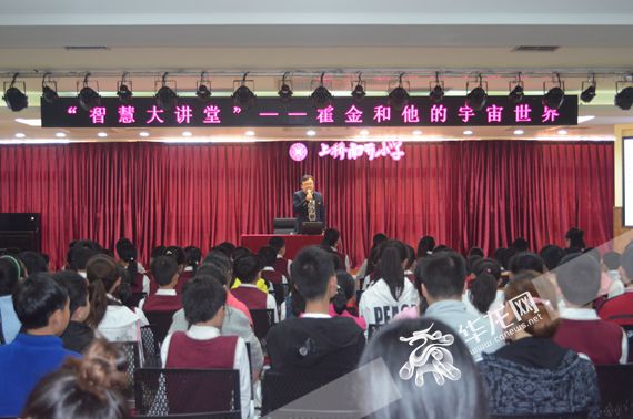游霄鹏老师以“霍金和他的宇宙世界”为题,以引导性提问、图文讲解、现场互动等方式,带师生们走进霍金的世界,从中了解智慧、开动智慧。