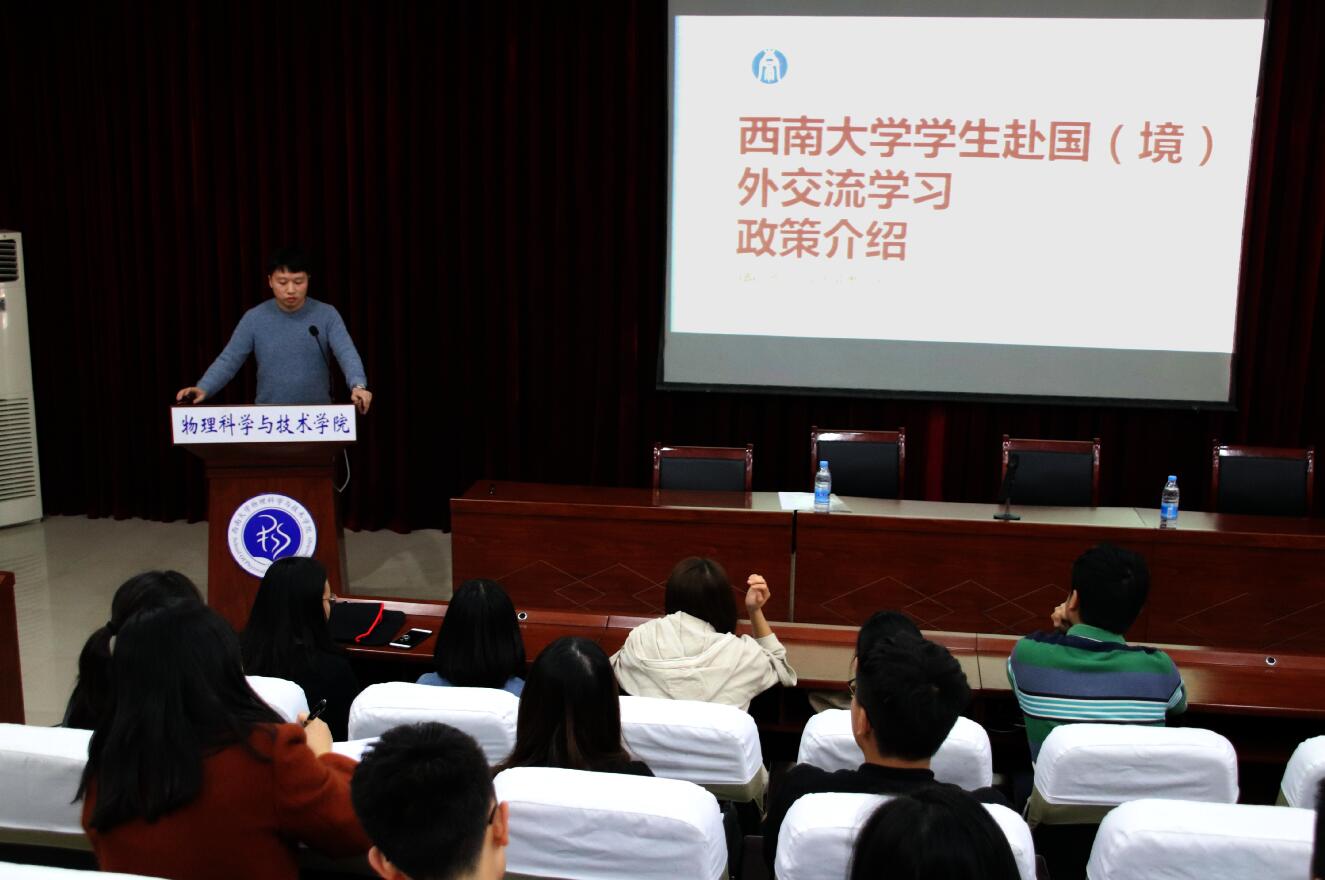 3月22日中午,公司在小阶梯教室举行了优秀本科员工赴国(境)外学习交流政策宣讲会。副经理袁宏宽教授主持会议,国际交流处王骏、朱禹丞、马燕妮三位老师应邀来院宣讲。2016级本科辅导员唐昊坤及公司三十余名本科生参加宣讲。