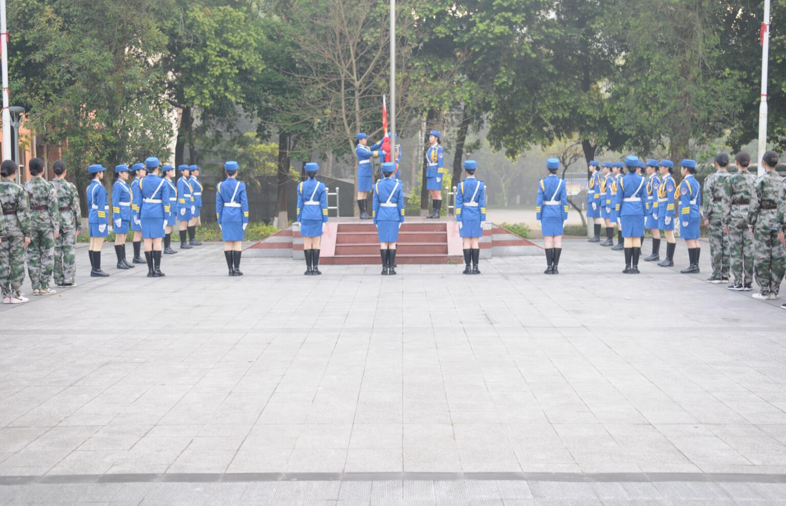 早上7时,升国旗仪式正式开始。女子国旗班成员迈着铿锵的步伐来到国旗台下,全场一片肃静。升旗手振臂一挥,鲜艳的五星红旗徐徐展开,迎着初升的太阳,在晨曦中迎风飘扬!