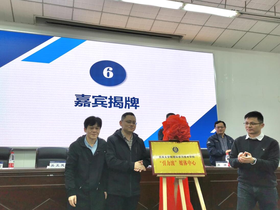 李文富处长、吴靖副部长与吴正茂经理一同为“引力波”媒体中心揭牌。