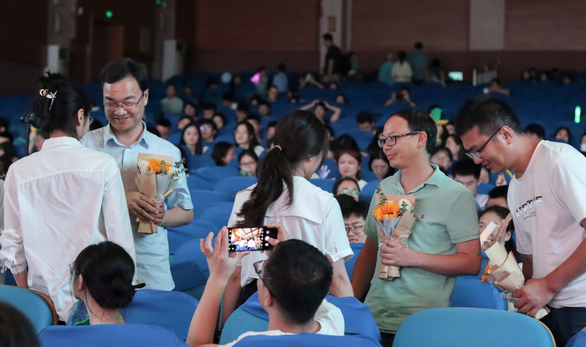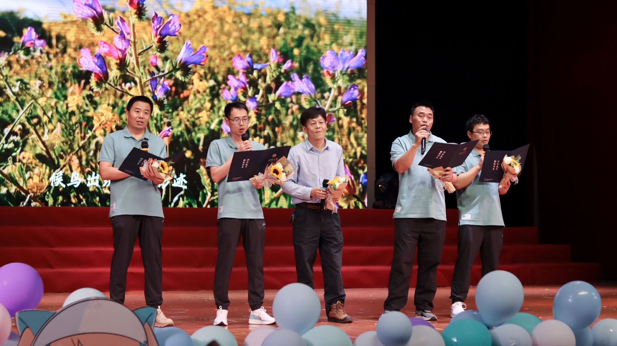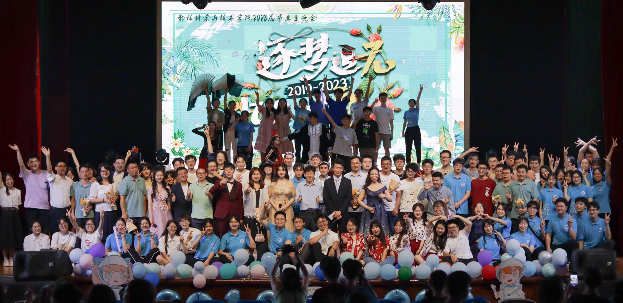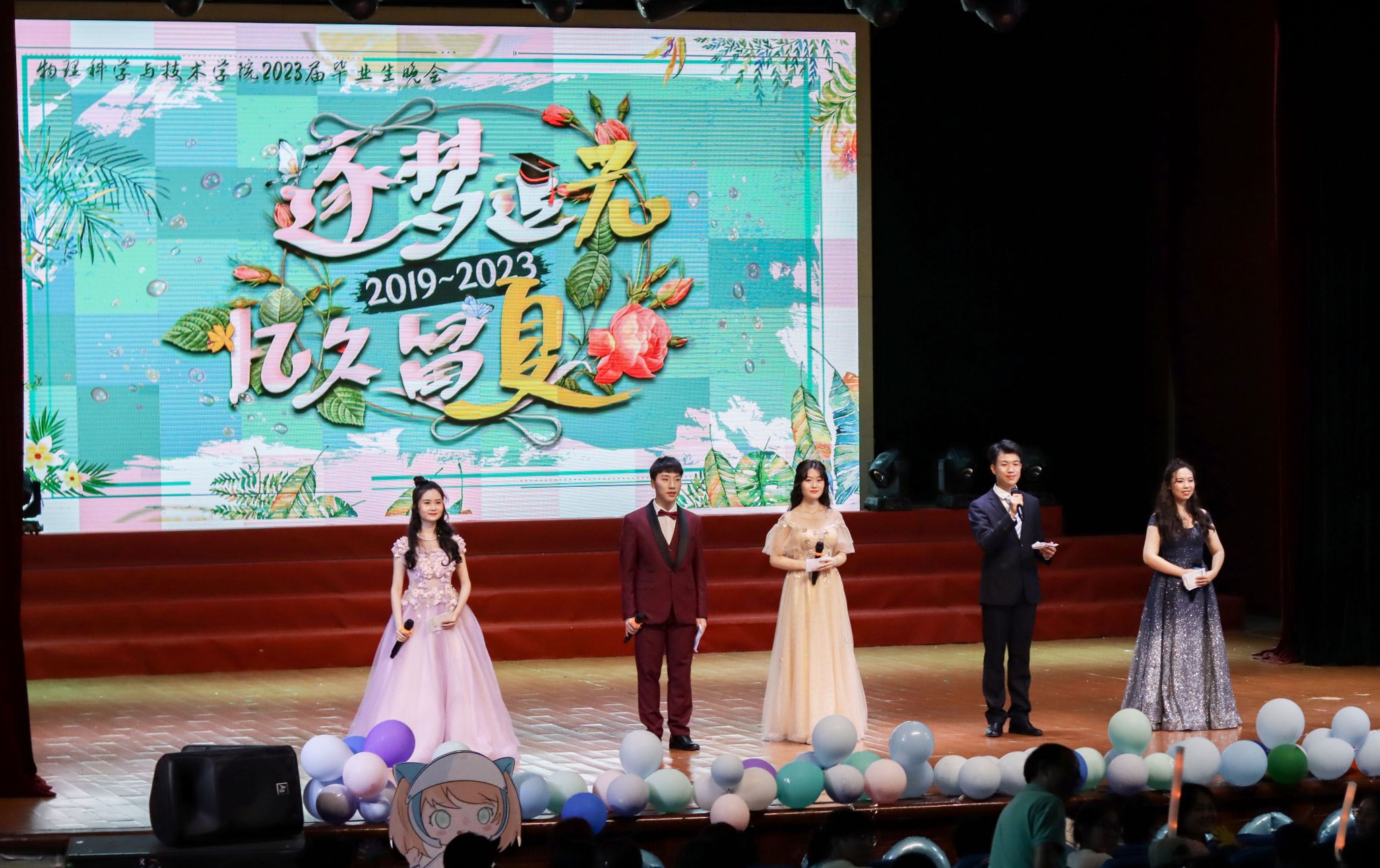 玉兰花虽开了又谢,青春却永不散场,舞蹈《零零年代》拉开了第三篇章的序幕。幕布剧《青春剪影》光与影交织错落,记录了老员工活的欢喜与忧愁;吴正茂经理和谭兴文老师、杨继勇老师、周廷伟老师、王龙军老师联袂带来的歌曲《外面的世界+明天会更好》表达了老师们对毕业生同学的由衷祝福,希望他们能继续秉持“格物致理,崇德尚善”的院训,向着更远的目标奋勇前进。同学们再度沸腾起来,纷纷向恩师们献花致谢。晚会当中还穿插着互动游戏和微信抽奖环节,,产生了九名幸运观众。