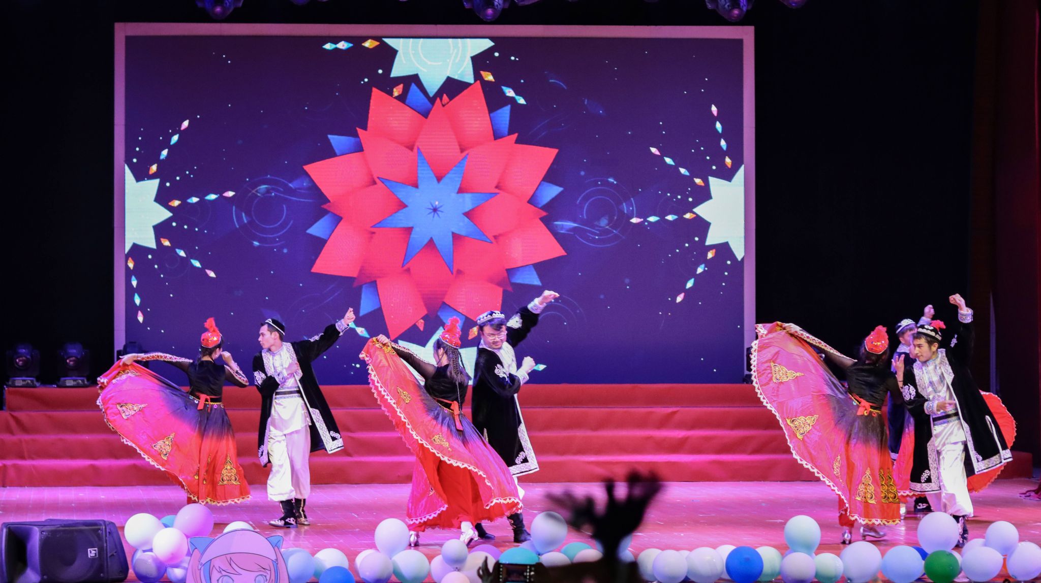 第一篇章围绕着从相识到相知的美好回忆展开。器乐弹唱《Hoping for future &记念》悠扬婉转,仿佛带着大家回到不负遇见的2019年秋天;八名维吾尔族同学以婀娜的舞姿向大家展示了新疆之美;相声《大学那些事儿》以幽默而生动的语言艺术,赢得了观众们热烈的掌声;林晓东老师独唱一首《不如我们今天见》,寄托了浓浓的师生情谊。
