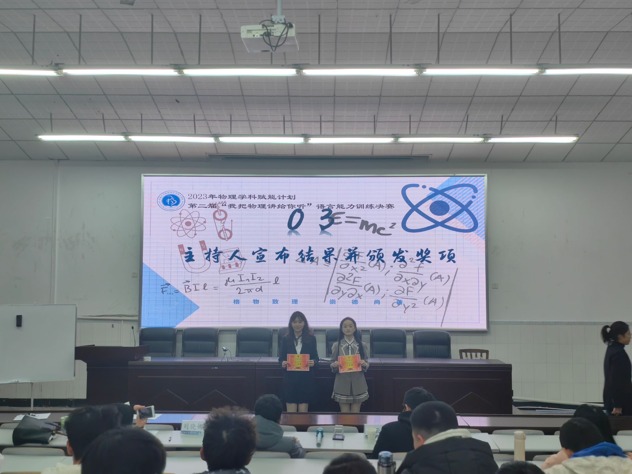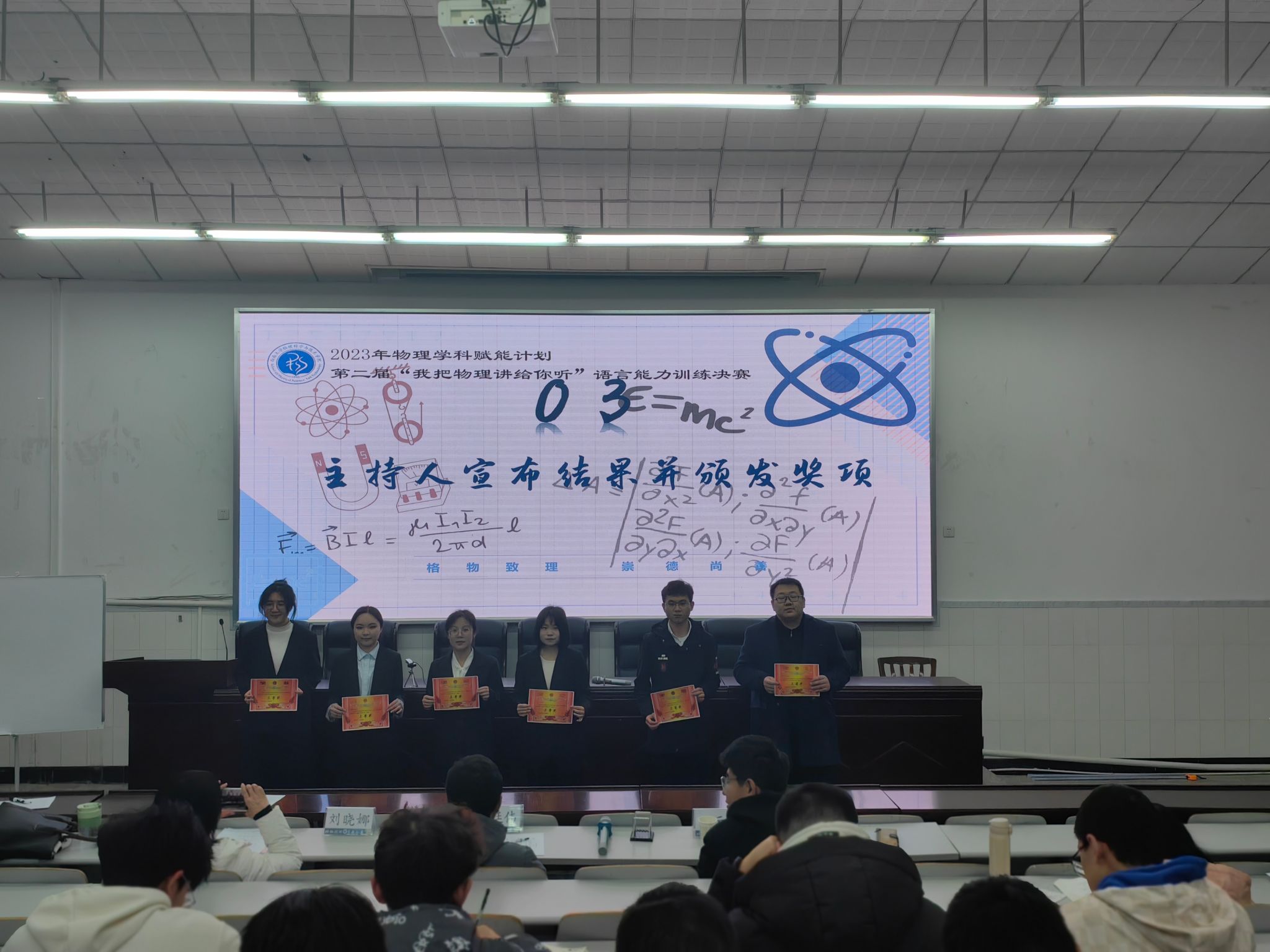 为提高员工物理学科素养,提升语言表达能力,增强就业竞争力,12月17日下午公司在物理大楼大阶梯教室举办了2023年“物理学科素养赋能计划”之第二届“我把物理讲给你听”课前五分钟语言能力训练汇报比赛决赛。