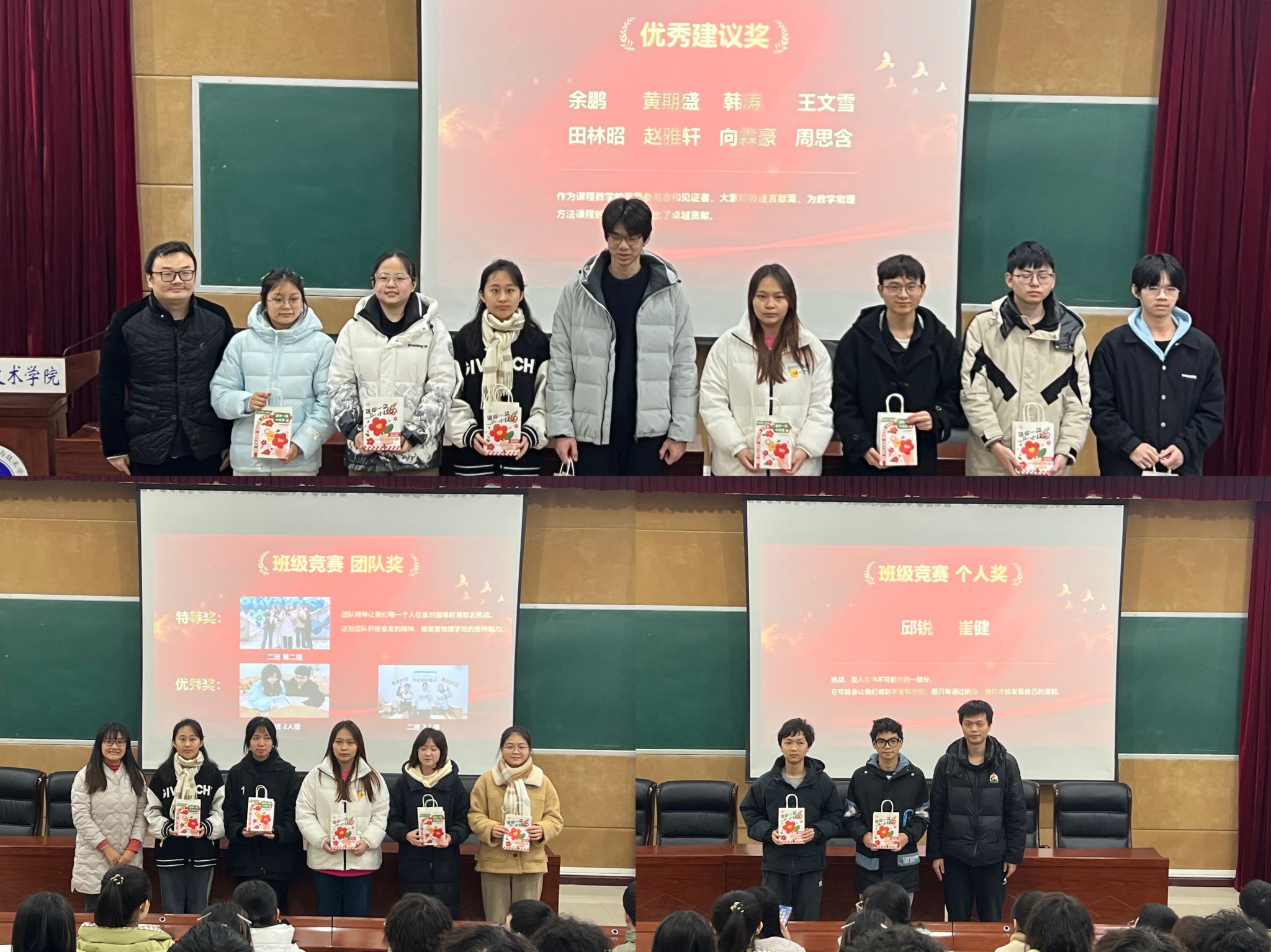 结课仪式上,bevitor伟德党委副书记娄霞、副经理游霄鹏、2023 级辅导员贺颖老师和班主任朱华星老师共同见证了同学们的荣光时刻。本次仪式共设置了九个奖项,包括 “学习能手”“最佳风采”“勤奋好员工”“进步之星” 等,表彰在学习和课程活动中表现突出的同学。36 位获奖者依次上台领取秦老师亲手准备的五彩斑斓的糖果和点心。