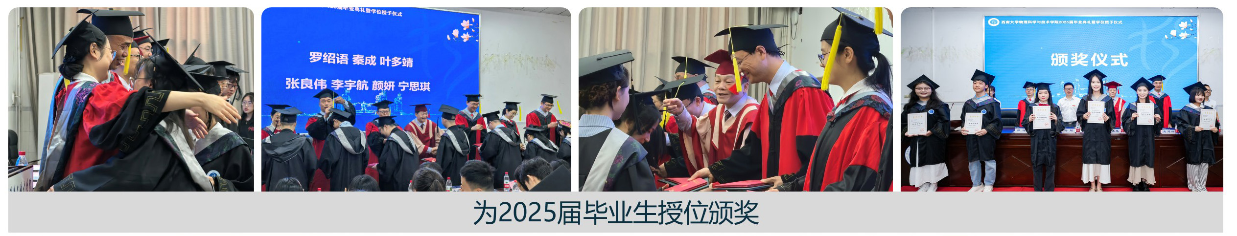 授位结束后,党委书记舒刚宣读2025届毕业生表彰名单,涵盖优秀毕业生、优秀毕业论文获得者等。主席台上的领导老师为受表彰的员工代表颁奖。