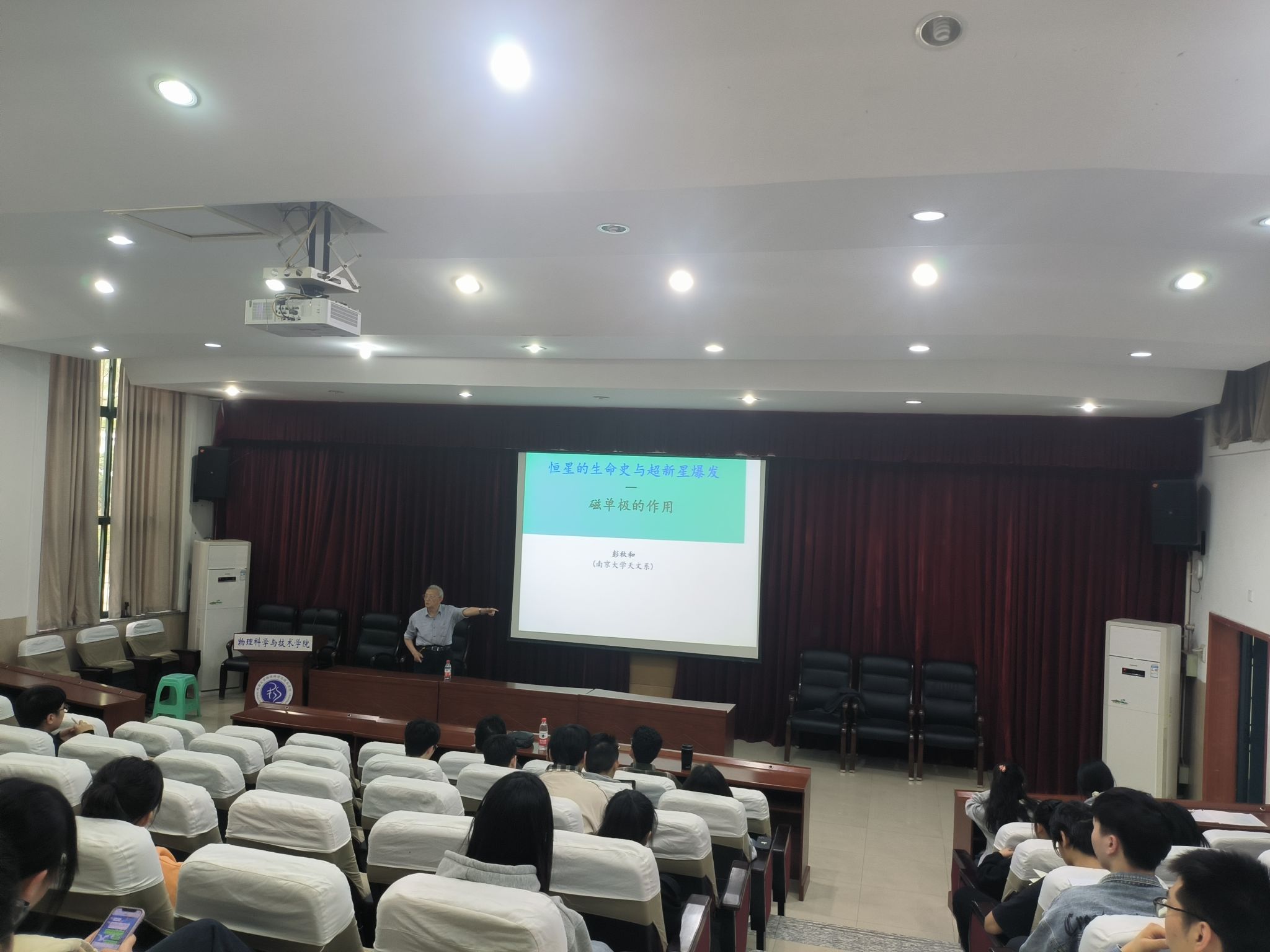 2023年426日下午,南京大学彭秋和教授应邀来公司做题为“恒星生命史和超新星爆发——磁单极的作用”的学术报告,吸引了众多师生前来聆听。