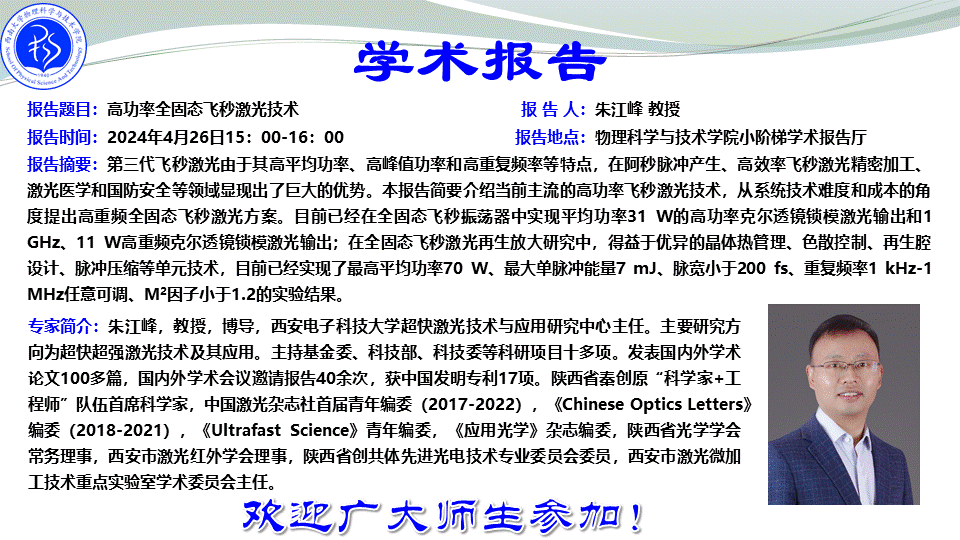 【学术报告】高功率全固态飞秒激光技术