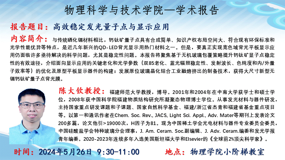 【学术报告】高效稳定发光量子点与显示应用