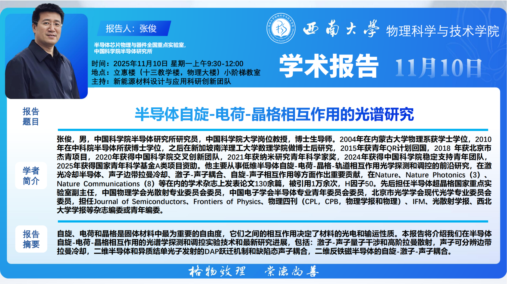 【学术报告】半导体自旋-电荷-晶格相互作用的光谱研究
