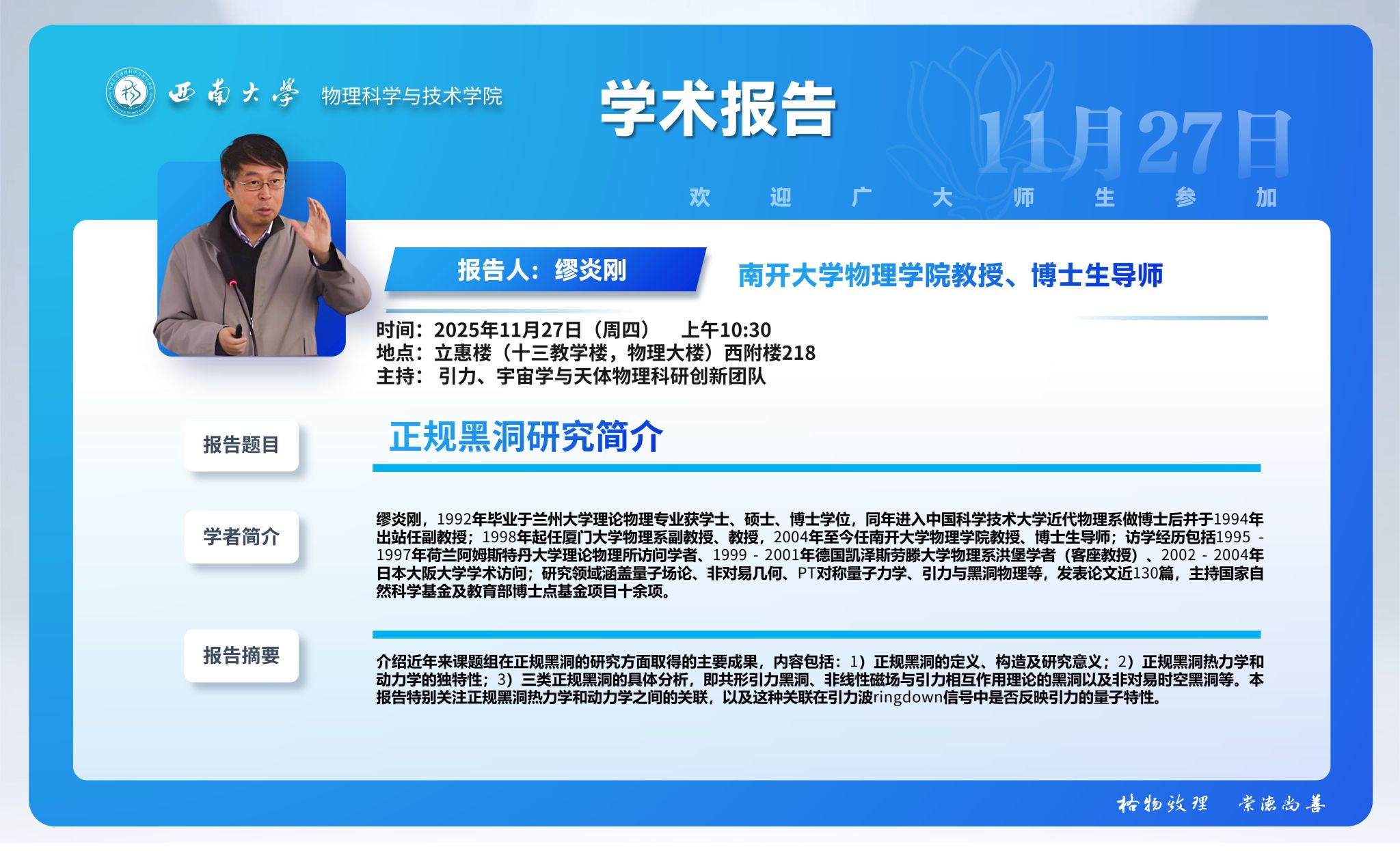 【学术报告】正规黑洞研究简介