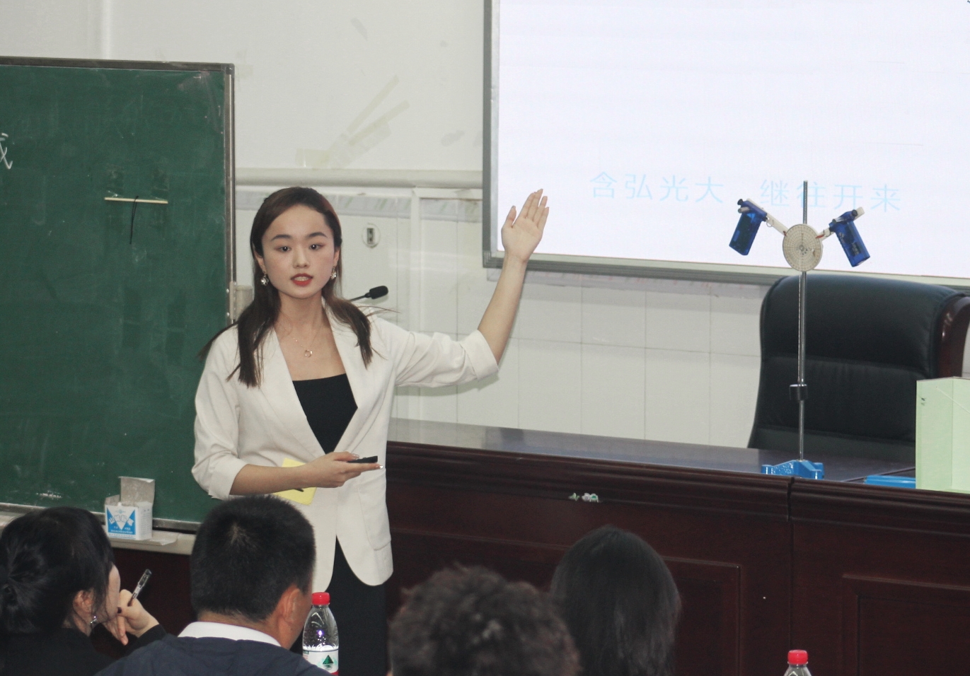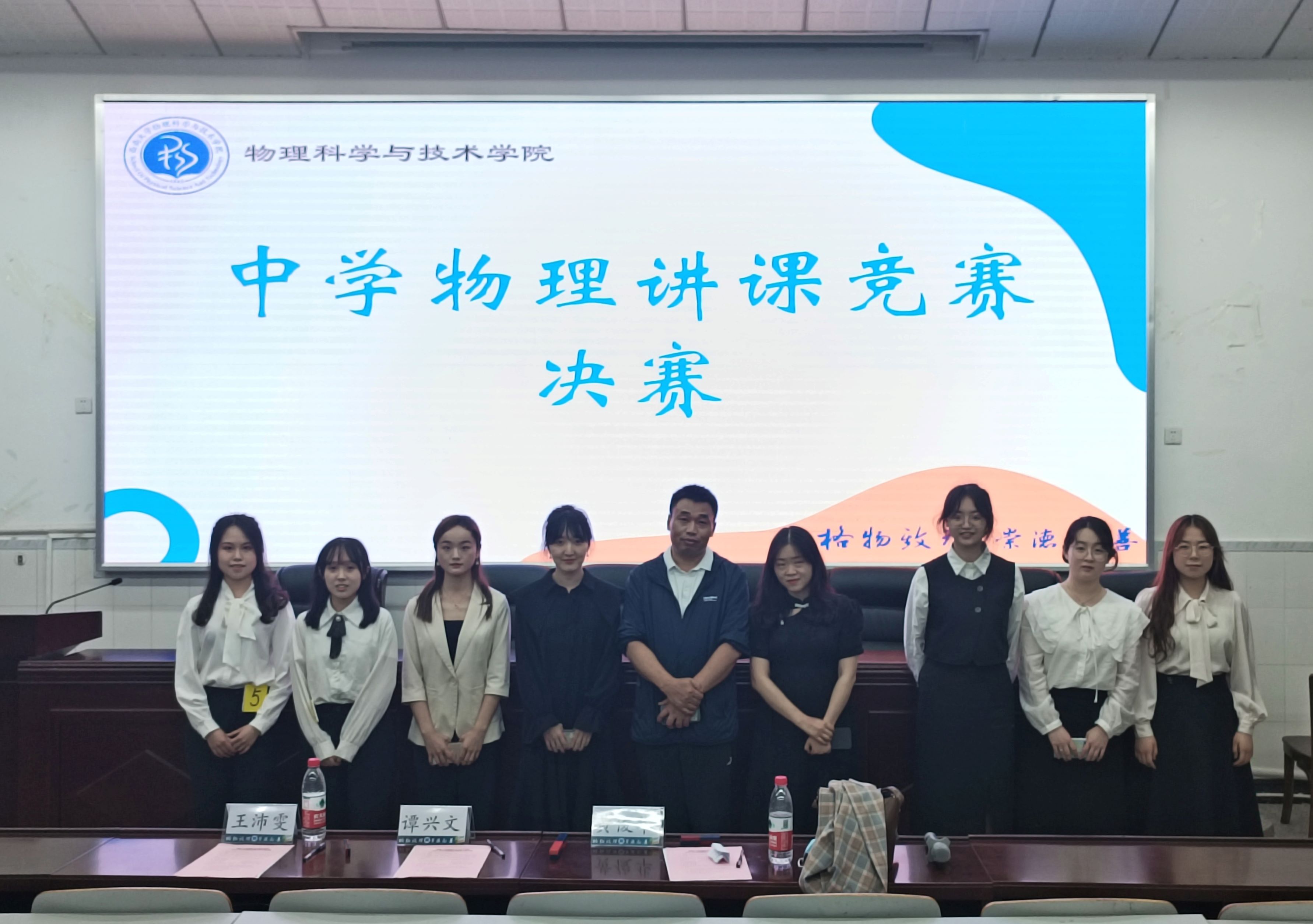 师范生课堂教学技能竞赛是集学习培训、赛事选拔、成果展示等育人功能为一体的实践教学平台,自4月24日全面启动以来,48名2021级、2022级同学积极参与, 经过“小组-班级-年级”逐层筛选产生了晋级决赛的6名选手。第一位选手是来自2021级师范三班的黄千宴,她讲解的题目是《向心力》。只见她用“水流星”的视频引入主题,引导大家探究影响向心力大小的因素,并通过实验验证得出结论,教学节奏紧凑,语言表达流畅,教态大方得体。来自2021级师范二班的周可一,她讲解的题目是《力的合成》,她用小玩偶的例子引出共点力的概念,又用“曹冲称象”的例子讲解了等效替代法,讲解新颖有趣。来自2021级师范三班的梁巧宜,她讲解的题目是《闭合电路的欧姆定律》。她用“小灯泡为什么能连续发光”实验引入,通过定性研究和定量表征引出电动势的概念。她教态落落大方,具有亲和力,同时讲解层次清晰,强调启发拓展,得到了评委的一致肯定。