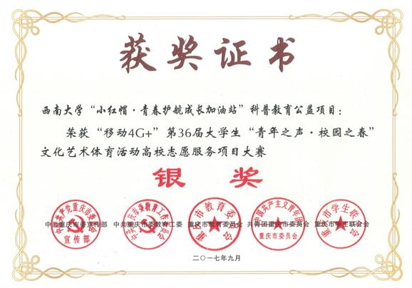 “红帽子”青年志愿者服务队本着“奉献、友爱、互助、进步”的志愿者精神,广泛地组织开展和参与各种志愿者活动,已成为全校老员工助人为乐、扶危济贫、无私奉献的志愿者的光辉榜样,成为公司精神文明建设的一支生力军,成为北碚区精神文明建设的一道亮丽的风景线。