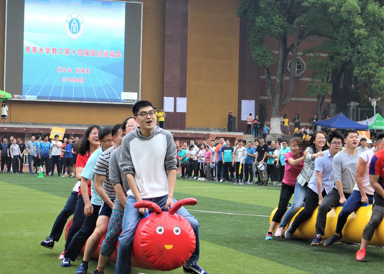 此次校运会,公司共计有113名员工参加了26个单人项目、2个团体项目的比赛,28名教师参加了14个单人项目、9个团体项目的比赛,近两百名员工参与了志愿服务和后勤保障工作。各项赛事陆续展开后,大家热情高涨,公司志愿者和后勤啦啦队在场下全心全意坚守岗位,运动健儿们在场上奋力拼搏、超越自我。沙坑前的每一次起跳,他们目光坚定;跑道上的每一次冲刺,他们永不言弃;团体项目的每一次协作,他们团结一致。运动会的第二天下午,一场大雨突然降落,运动员们发扬体育精神,坚持在雨雾中完成了各项比赛。
