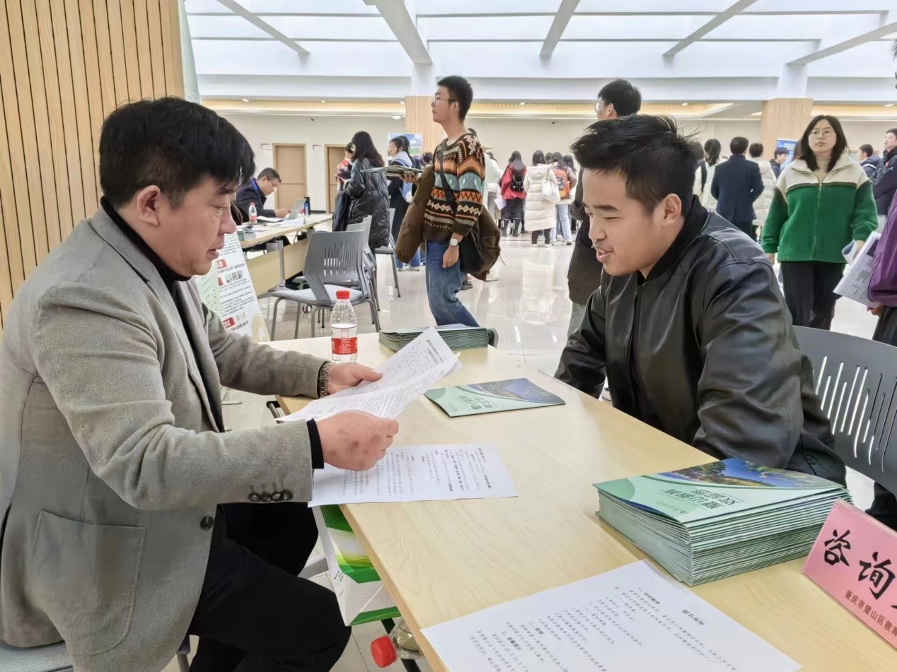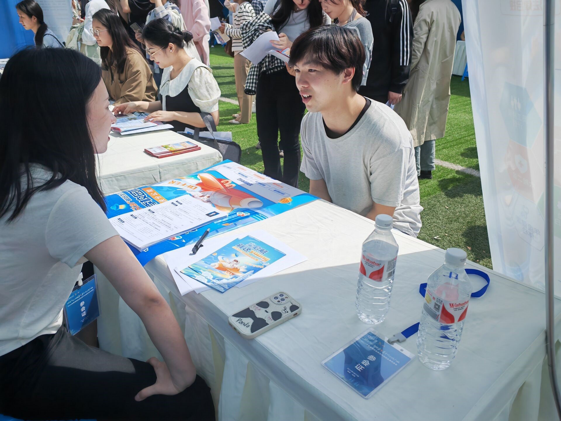 同学们前往校园招聘现场观摩学习,打探“行情”。他们穿梭于各个招聘展位之间,积极与用人单位代表展开面对面交流。