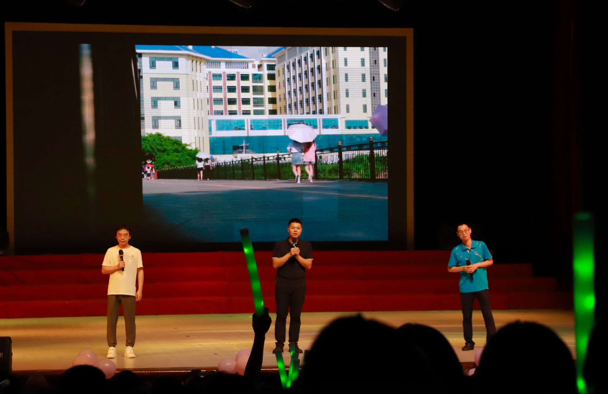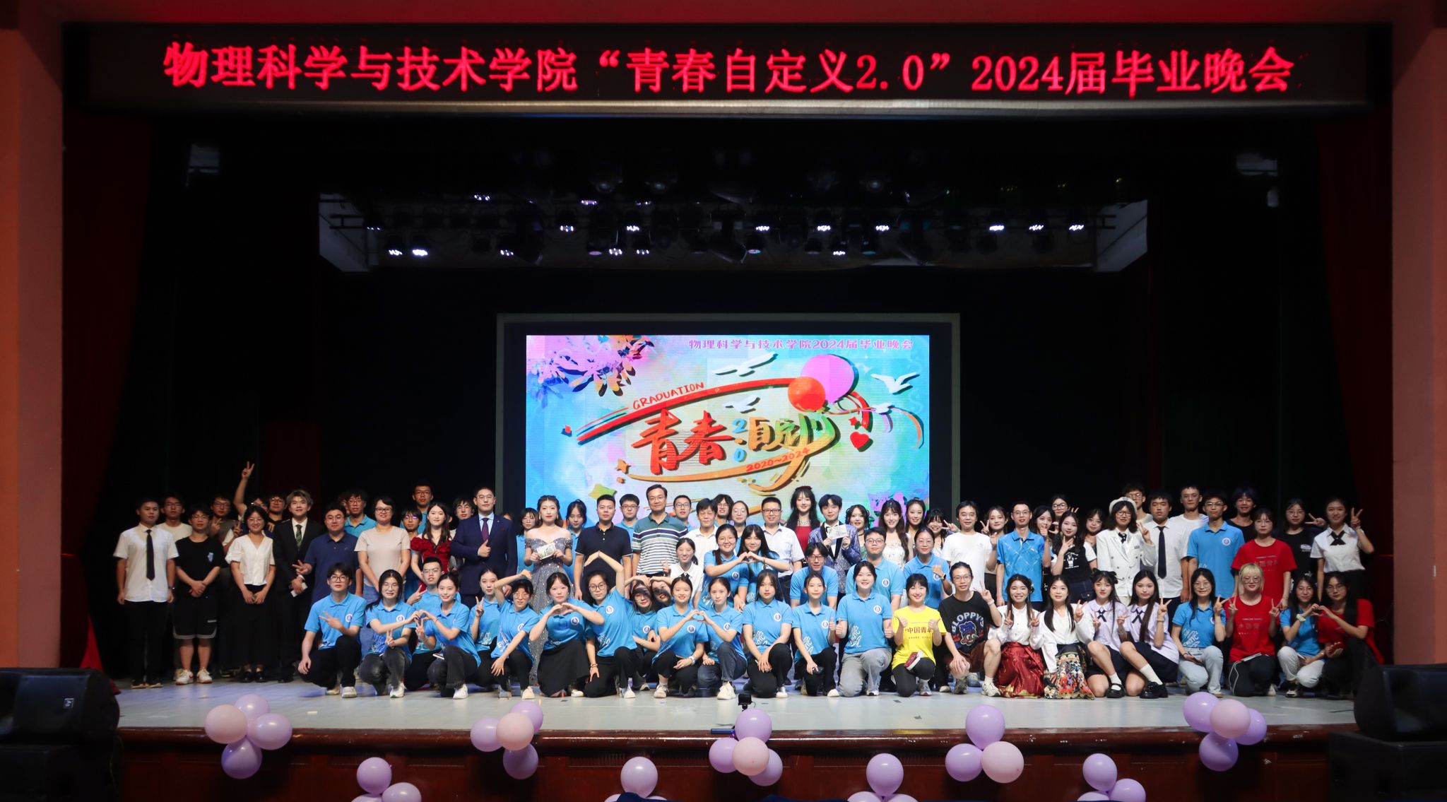 晚会过程中还穿插有观众游戏环节和微信抽奖环节,提问幸运观众“最喜欢的教学楼”“西大最美的地方”“最难的物理学科专业课”等关于母校生活的点滴回忆,同学们积极参与,赢得了翻页笔、小风扇等精美礼品。最后,小合唱《少年》《夜空中最亮的星》和一个记录着全体毕业生入学纪念照的彩蛋视频为晚会画上了圆满的句号。