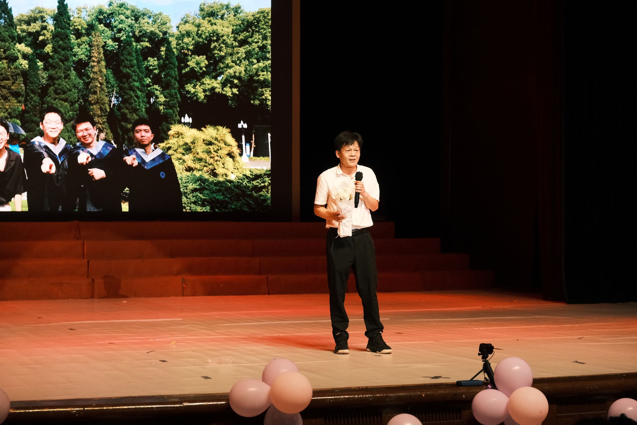 吴正茂经理带来的一曲《朋友》表达了对毕业生的依依情深,也是他们亦师亦友的见证。毕业生们也纷纷献花致谢,感谢陪伴了自己老员工涯的师长们。