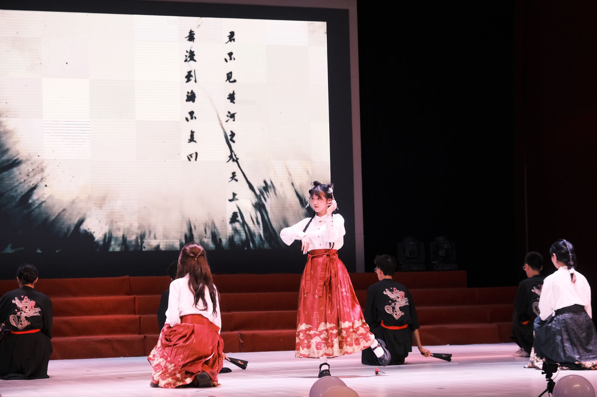 本场晚会由“青春·热烈的诗行”“青春·奋楫的手函”“青春·未来的序章”三个篇章组成,公司师生联袂带来16个精彩纷呈的节目。晚上7点,团委员工会办公室带来的国风舞蹈《将进酒》拉开了演出的序幕。