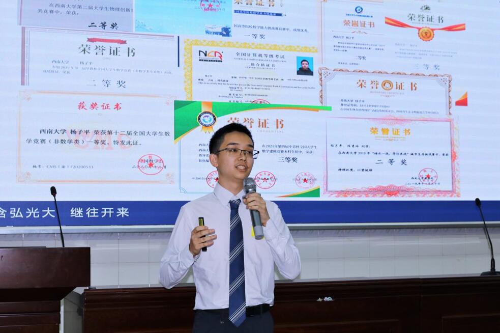 物理学班的答辩中,2020级吕文龙同学以“热爱”书写学习生活,短短一年的学习成果颇丰;2019级徐伟同学勇夺年级综合测评第一,发表多篇学术论文;2018级苏航同学已经取得保研通知书,顺利完成校级创新项目并成功获批一项发明专利,用良好的竞争心态鼓励着学弟学妹积极前行。
