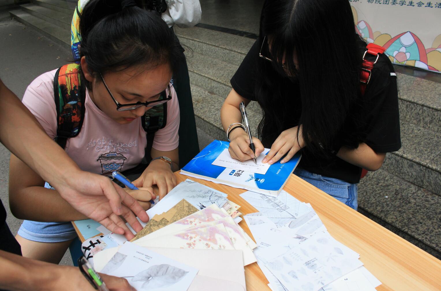 5月21日在物理大楼门厅开展的“我想对你说”情书传递活动,为同学们搭建了一个传播青春正能量的平台。参与同学在明信片上写下自己对国家社会发展的寄语、对老师同窗的情谊,以及对自己未来成长期待的心语心愿。公司现场登记收件人信息,并代为送达,写给自己的寄语则由公司心理健康分中心一年后返回本人。