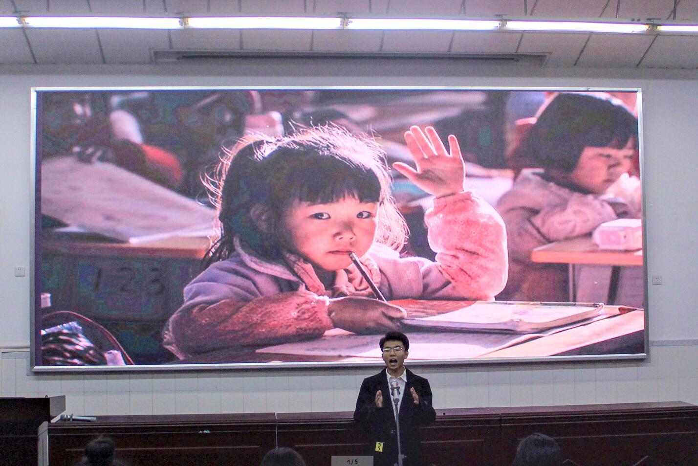 决赛分为主题演讲与即兴演讲两个部分。在主题演讲中,各位参赛选手依次上台,2019级物理学师范1班的孙小玥同学用战火中西南联大教师坚守岗位的感人故事打动了在场的评委与观众;2020级物理学师范1班的吴天富同学分享自己假期担任兼职教师的经历,号召教师要善于发现员工的“闪光点”;2020级物理学1班的李星怡同学立足现实,聚焦疫情防控中广大一线教师的日常点滴,指明了教师的责任与担当;2020级物理学师范1班的敬玲莉同学结合亲身经历讲述自己在迷茫中追求从教初心的曲折与不易,道出了“教育是爱在文明层面之延续”的个人感悟;2020级物理学师范3班的陈子祺同学用自己舅公在教师岗位上的坚守故事,传达了“教育为公,以达天下为公”的教育理念; 2019级物理学2班的杨杰同学以最美乡村教师张玉滚的故事为引,回答了“为什么教育究其根本讲的是问心无愧”的质朴道理。