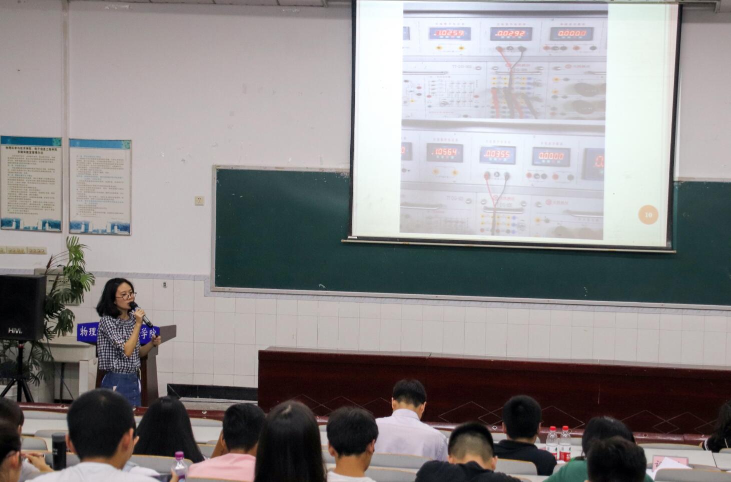 在学科科研论文答辩中,2016级师范2班马丹阳小组的论文《基于β射线吸收的薄膜厚度测量研究》探讨了如何利用β射线穿过薄膜材料能量的损失来测量薄膜的厚度;2017级物理学班徐晓涵小组的论文《RLC串联谐振电路特性研究》讨论了RLC谐振电路的特性和数据;2015级普师班邢玉陟小组的论文《基于NiO空穴传输层的CH3NH3Pb13钙钛矿太阳能电池的光伏特性》,从传统有机-无机杂化钙钛矿太阳能电池的优缺点入手,通过对电池传输层和吸光层的实验测算,得出电池制备的最优条件,赢得评委一致好评。