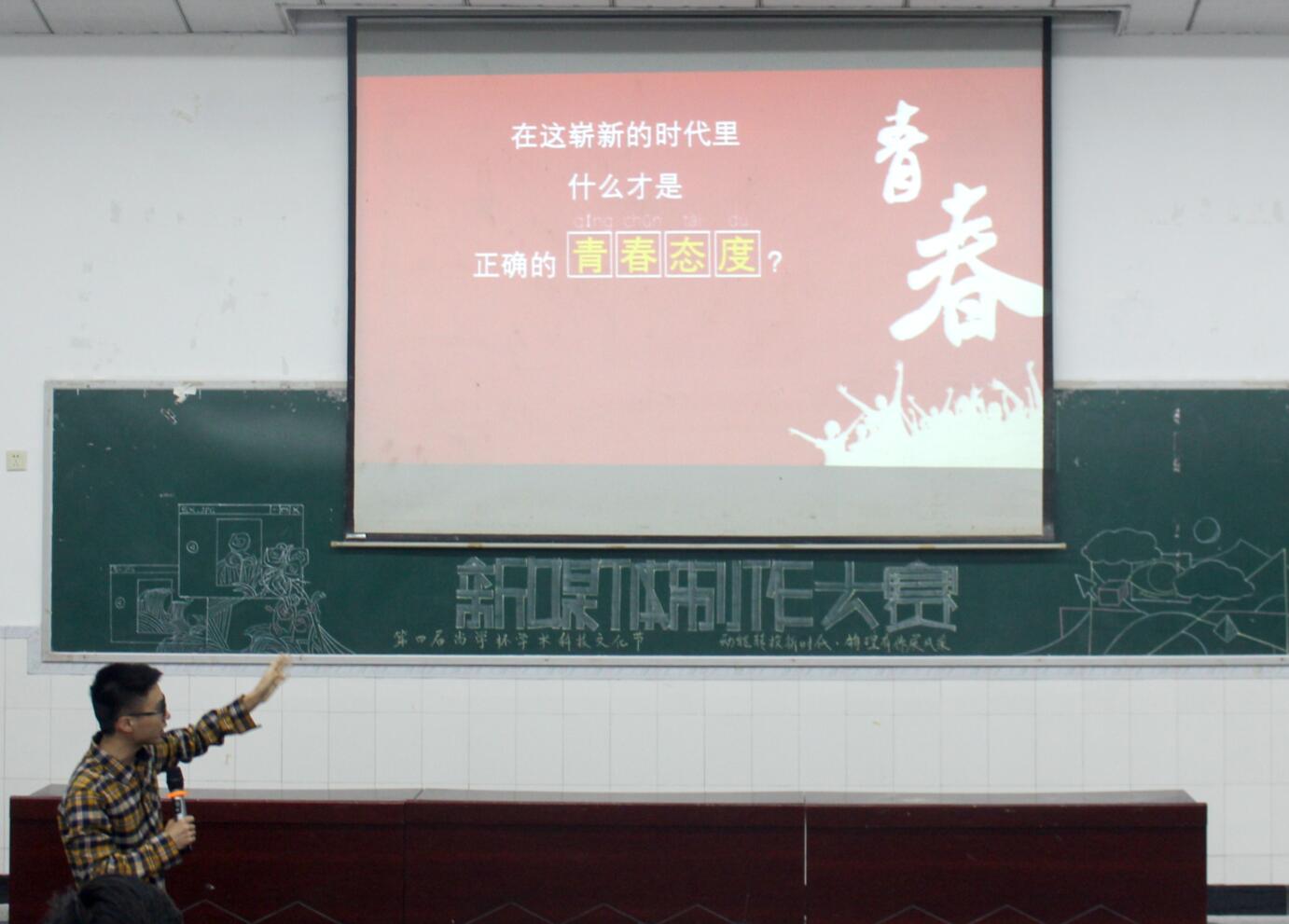 4月13日晚7时,新媒体制作比赛决赛在公司大阶梯教室举行。为了保证比赛评选效果,加强院际交流,特邀了计算机与信息科学公司团委员工会宣传部部长李昭,经济管理公司团委员工会新媒体中心主任姜玫宇,生命科学公司团委员工会新媒体中心副部长高畅三位同学作为评委。